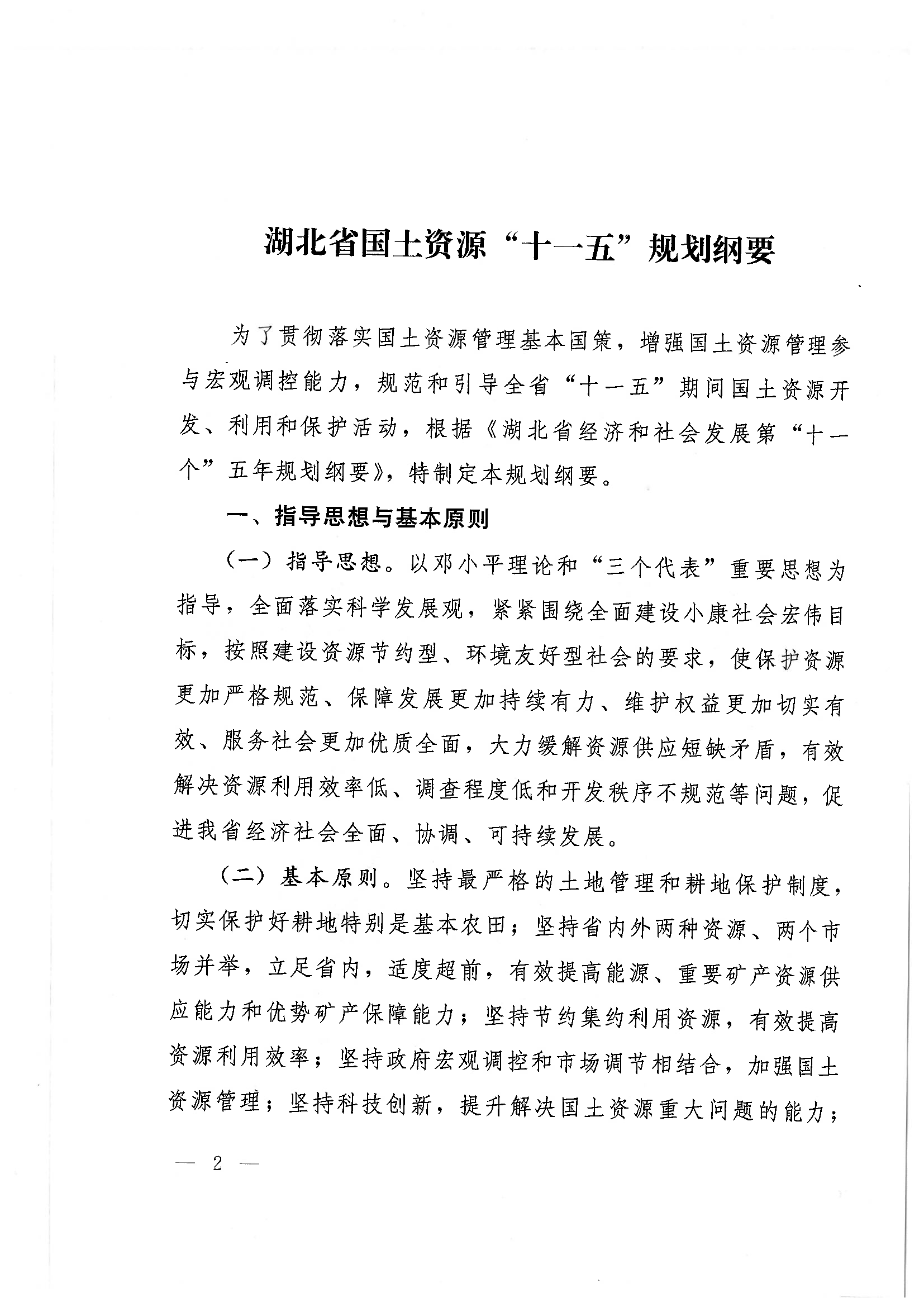 湖北省国土资源“十一五”规划纲要