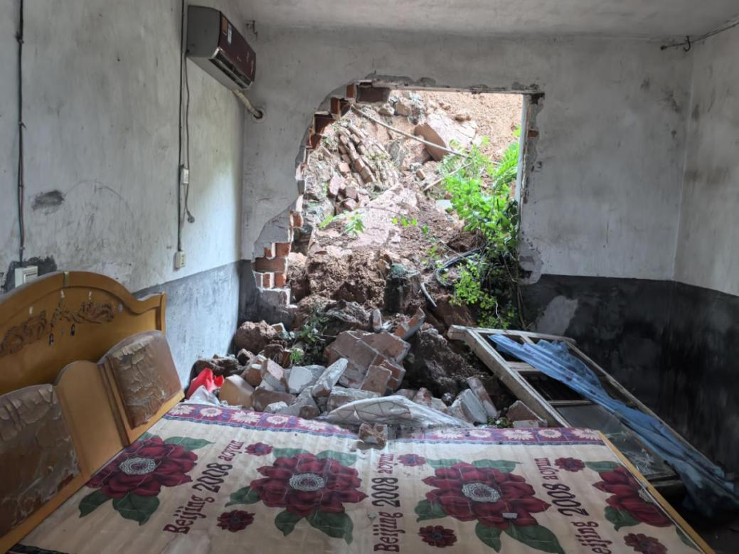 滑坡体冲毁卧室后墙进入屋内