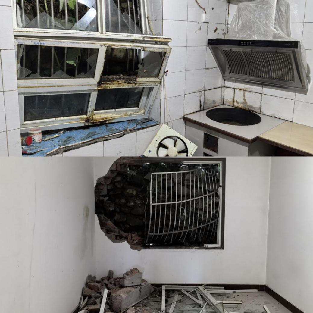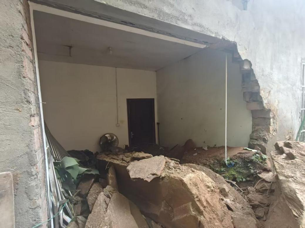 崩塌岩体冲毁后墙进入屋内