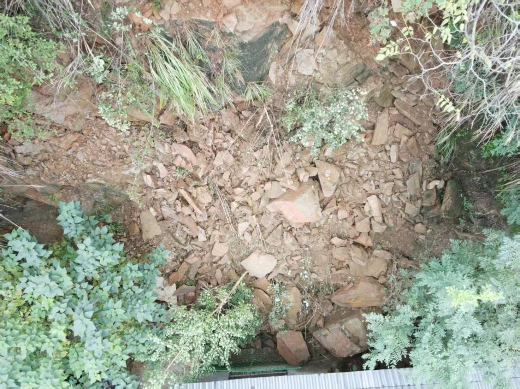 崩塌岩体堆积至屋后